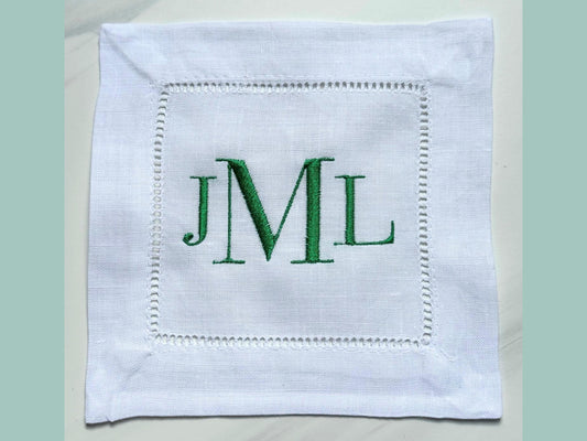 Custom Embroidered Linen Cocktail Napkins - Classic 3 Letter Monogram