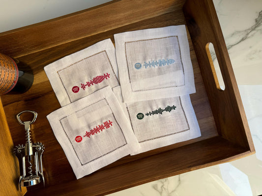 Add a personal touch to your gatherings with custom embroidered cocktail napkins. Choose from a variety of fonts, designs, and thread colors to create a stylish accent for your bar cart, dinner parties, or special occasions. Whether it’s a monogram, a witty phrase, or a themed motif, our high-quality embroidery ensures a refined, long-lasting finish. Perfect for gifting or entertaining, each napkin is made to order with care and attention to detail.